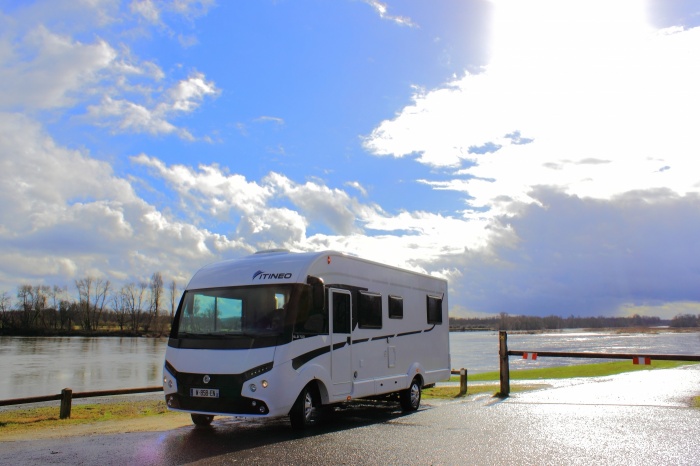 We left Mayenne mid-afternoon on Saturday without a fixed destination for that night. Our only goal was to follow the Levée de la Loire embankment between Angers and Langeais. The wraparound views offered by this type of vehicle are always a treat and let you enjoy the landscape.