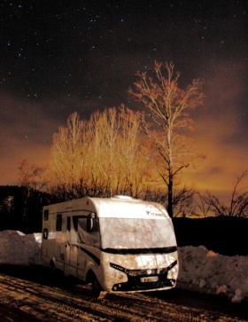 After a short stop in northern Isère to say hi to some friends, stock up on food and empty/refill the tanks, we were back on the road heading to the slopes at Lans en Vercors. This “day” ski resort (there is no accommodation at the foot of the slopes) has a motorhome service point (unfortunately closed due to frost, contrary to what the tourist office said) and large car parks with motorhome parking. We were the only ones there. It was wonderful to have this place all to ourselves! We made the most of it, taking night photos and admiring the starry skies.